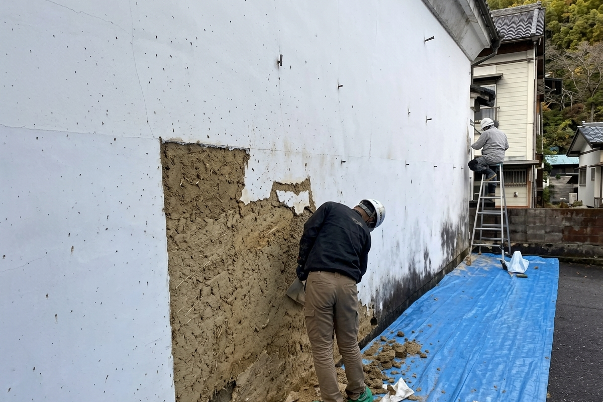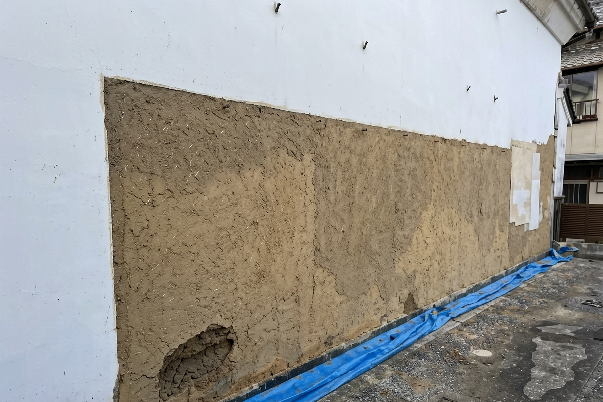 既存の漆喰を一度はがし、傷んでいる部分や浮きがある箇所をしっかり取り除きます。