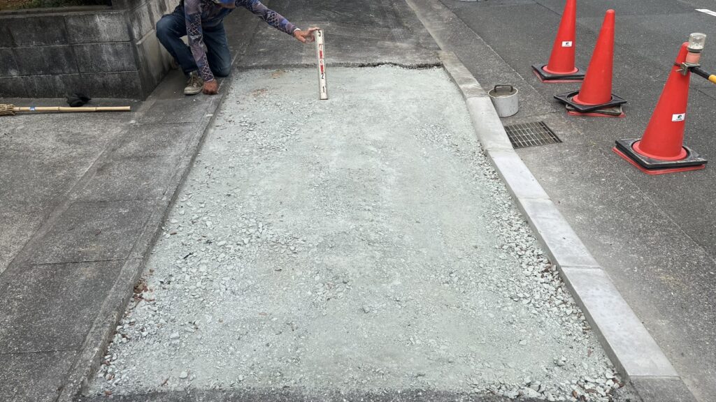 植栽帯・境界ブロックを取り壊し、申請位置に合わせて境界ブロックを並べ替えます。