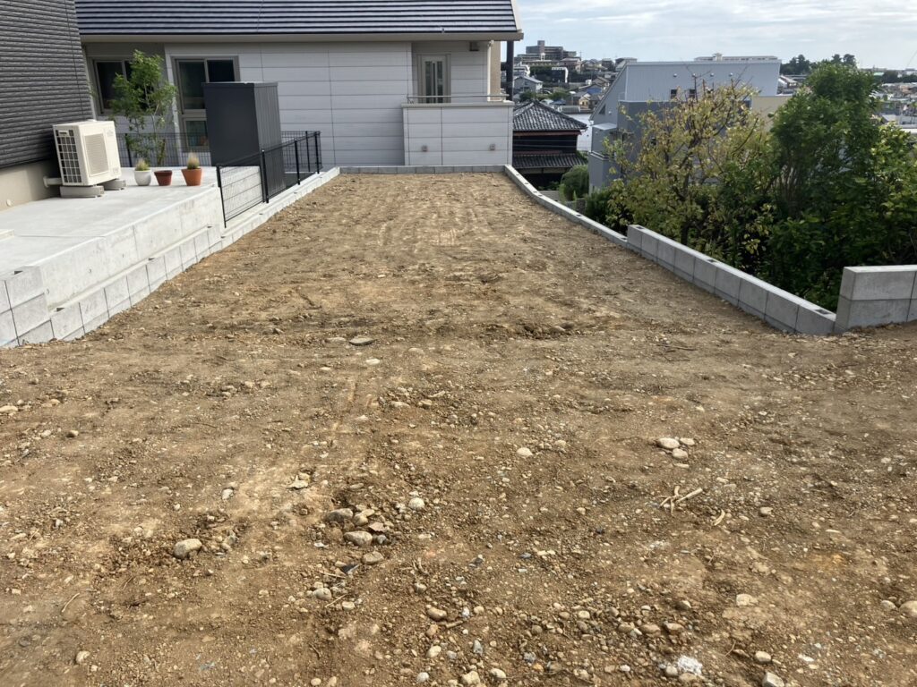 コンクリートを打設した後は、十分な時間をかけて養生(コンクリートを固めるための期間)を行います。コンクリートがしっかりと硬化したことを確認した後、型枠を取り外します。その後、擁壁の背面や周囲に土を戻す埋戻し作業を行い、地盤を締め固めながら整地していきます。これらの作業がすべて完了すると、L型擁壁の設置工事は完了となり、安全で安定した土留め構造が完成します。