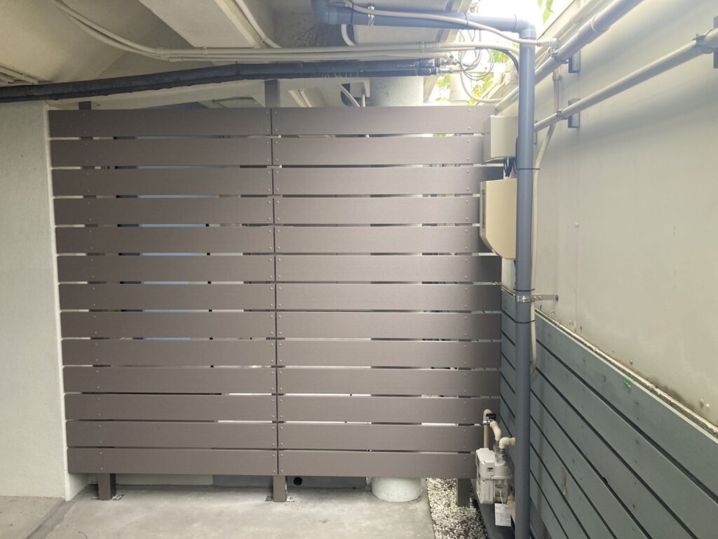 隣地との間仕切りに人工木を使ったオリジナル塀を施工しました。